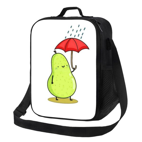 Pear holding an umbrella on a rainy day Lunch Bag
